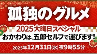 テレビ 孤独のグルメ大晦日SP|2025年版の放送局や時間、キャストやあらすじ。生放送はあるか? 孤独のグルメ、大晦日スペシャルって、もうすっかり定着しましたね。定番化されています。私も毎年楽しみにしています!2025年の年末の放送についてチェックしてみました。孤独のグルメ大晦日スペシャルの放送局孤独のグルメ大晦日スペシャルは意外と放送... 2025.11.04 テレビ